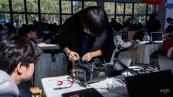 本届大赛以“交叉融合工程创新育新质,立德树人强国建设勇担当”为主题,设置数智竞技机器人、智能穿戴、智能制造数字孪生技术及企业运营仿真四个赛项,吸引了来自全省32所高校的289支队伍同台竞技。